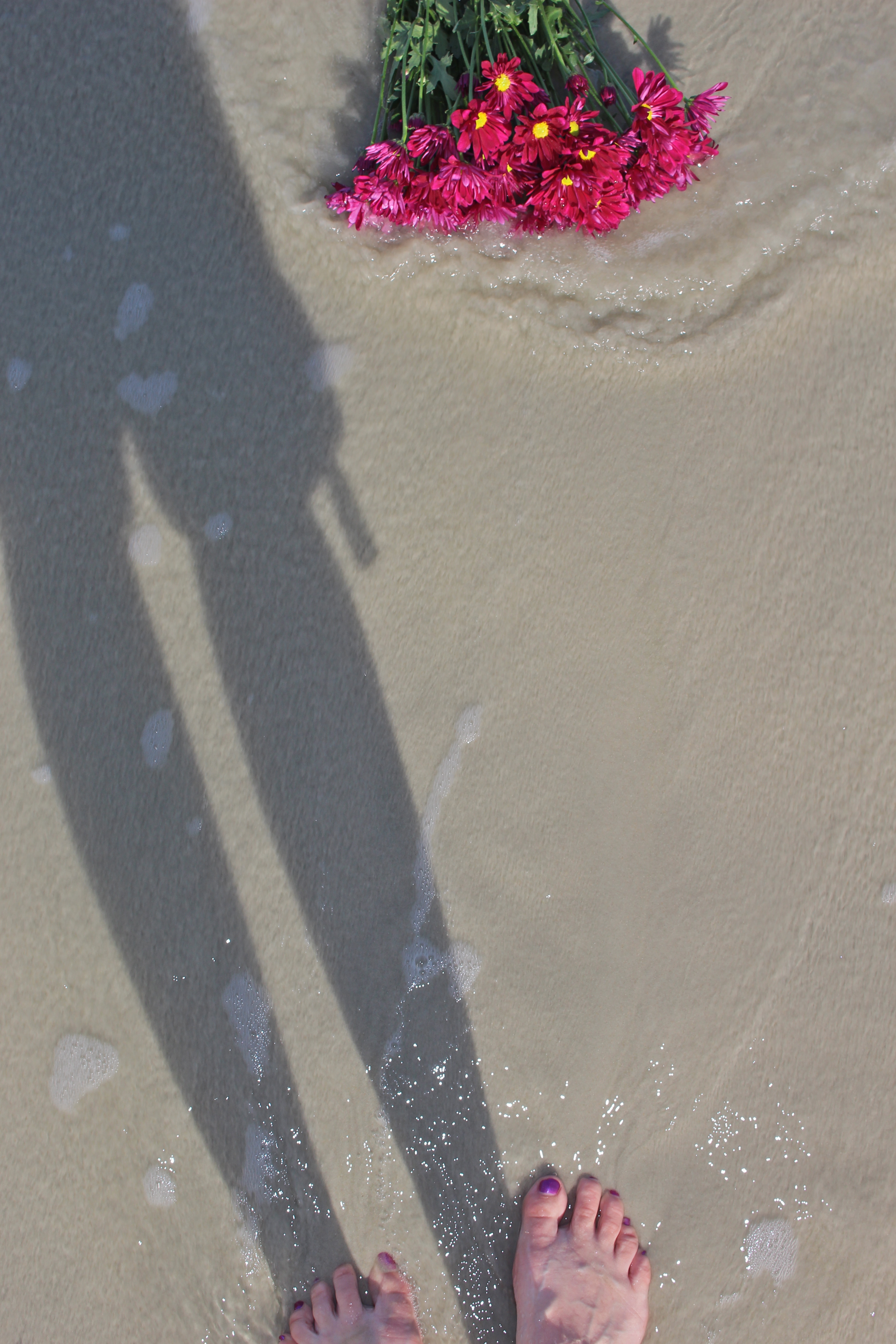 “Every time I release flowers in Jay’s memory, I sit back and watch them for a while. Eventually, the tide brings them back and someone comes by to gather them up with wonder, as if the ocean has handed them a miracle. The last time I did it, a little blonde girl ran along the sand and presented her mother with an ocean-bouquet. I watched as she pointed to the flowers and then out to the waves, trying to explain to her mother where the flowers came from.”