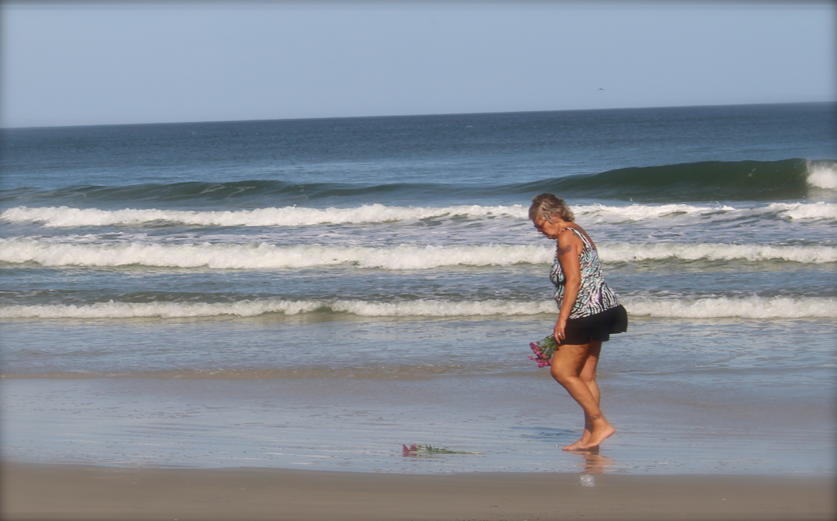 I could tell the man was concerned about her picking up the very same flowers I had so tearfully released into the sea.